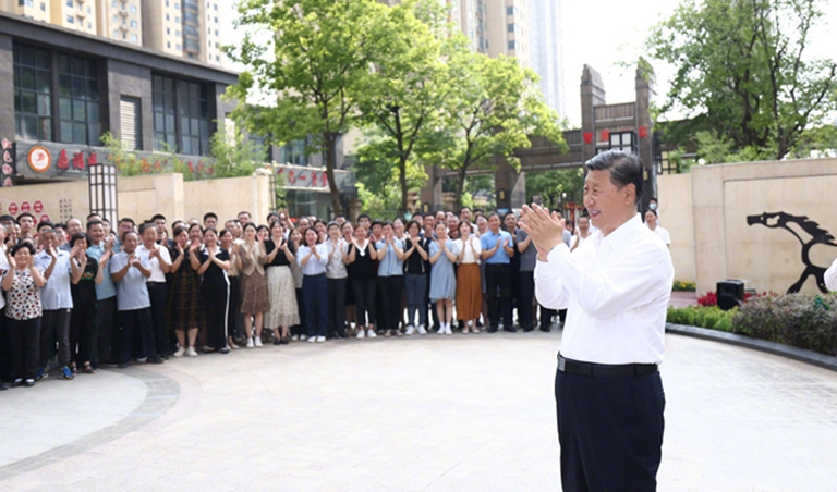社区小广场上,干部群众纷纷围拢过来,欢呼着向总书记问好。习近平亲切地对大家说,我一直牵挂着武汉人民,时隔两年,再次来到武汉这座英雄的城市看望大家。疫情暴发以来,广大社区工作者长期坚守在防控一线,承担了大量繁杂琐碎的具体工作,竭诚为社区居民服务,非常辛苦,功不可没。这里,我向大家并向全国广大社区工作者表示诚挚的慰问。