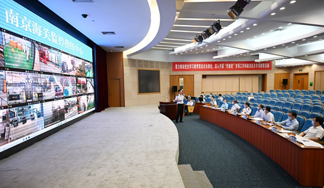 7月11日,省委书记吴政隆到南京海关调研。他指出,海关处在疫情防控“外防输入”重要关口、对外开放的最前沿,责任重大、使命光荣。希望南京海关坚持以习近平新时代中国特色社会主义思想为指导,深刻领悟“两个确立”的决定性意义,胸怀“两个大局”、牢记“国之大者”,完整准确全面贯彻新发展理念,加快服务构建新发展格局,进一步落细落实“疫情要防住、经济要稳住、发展要安全”的重大要求,高效统筹疫情防控和经济社会发展,统筹发展和安全,坚持“人物环境”同防,坚决守住“外防输入”重要关口,筑牢国门安全屏障,持续优化口岸营商环境,大力推动贸易便利化,促进产业链供应链安全稳定,促进对外贸易稳中提质,坚定不移推进高水平对外开放,在全省“扛起新使命、谱写新篇章”新征程中展现海关作为、作出海关贡献,以实际行动迎接党的二十大胜利召开。