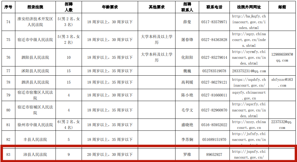 5.面试需携带身份证、学历证书等材料原件,时间、地点详见沛县法院官方网站及公众号通知。
