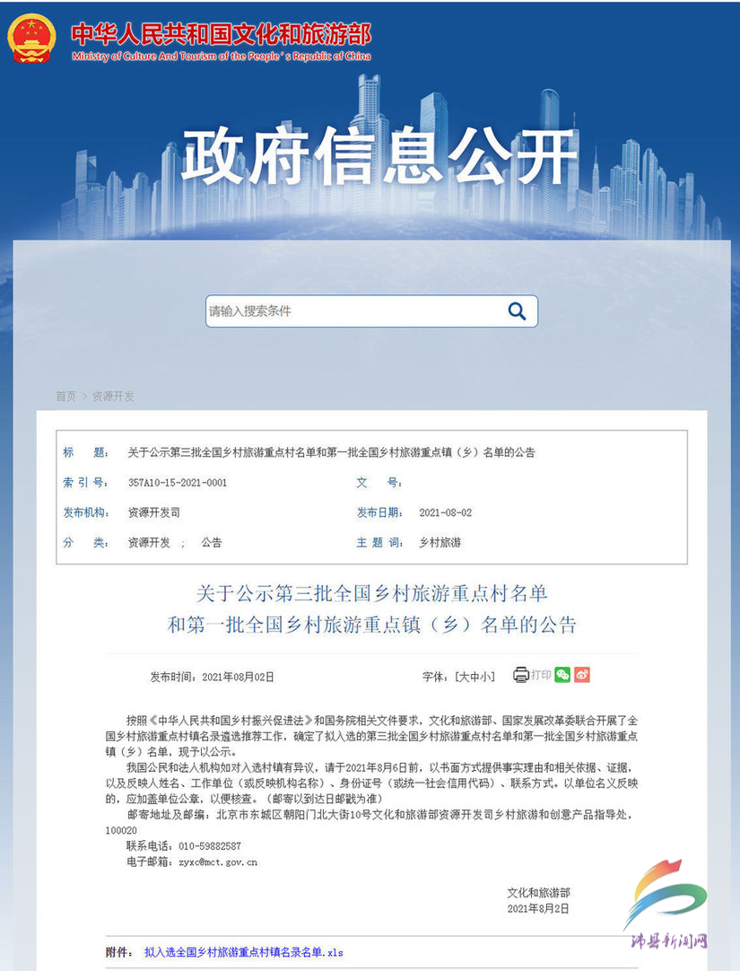 8月2日,文化和旅游部发布《关于公示第三批全国乡村旅游重点村名单和第一批全国乡村旅游重点镇(乡)名单的公告》。199个村拟入选第三批全国乡村旅游重点村,100个镇(乡)拟入选第一批全国乡村旅游重点镇(乡)。