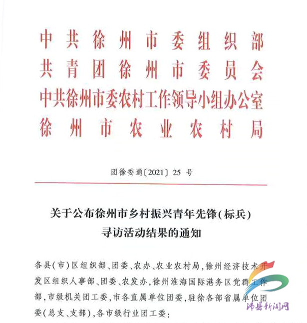 近日,徐州市乡村振兴青年先锋(标兵)名单公布啦。按照《徐州市乡村振兴青年先锋(标兵)寻访活动的通知》要求,经过资格审核、初审、终审、公示等环节,沛县11人获评徐州市乡村振兴青年先锋。