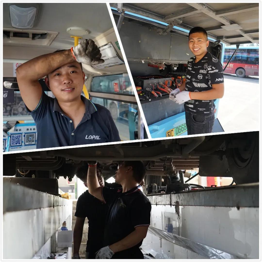 假日期间,维修人员从上班开始,就开始了一天的忙碌。满身油污穿梭于待修的车辆之间,钻车底爬车顶,排除车辆故障,保障车辆正常营运,他们不怕苦、不怕累,时刻准备着。一个人、一把“枪”,他们是公交车的续航保障者,他们的身影在车场来来回回,在公交车上的操作反反复复。充电、移车,移车、充电,在每一天的重复中,换来了纯电动公交车的能量满满,为车辆运营保驾护航。
