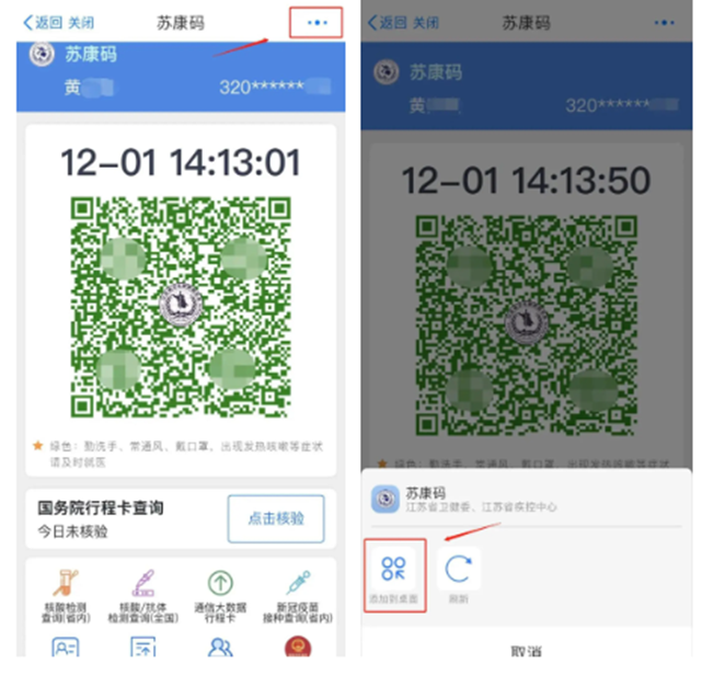 在苏康码页面点击右上角,选择添加到桌面,点击桌面苏康码的图标可以直接亮码。