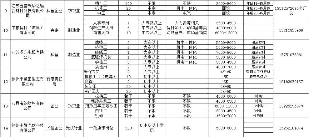 最新!沛县招聘岗位
