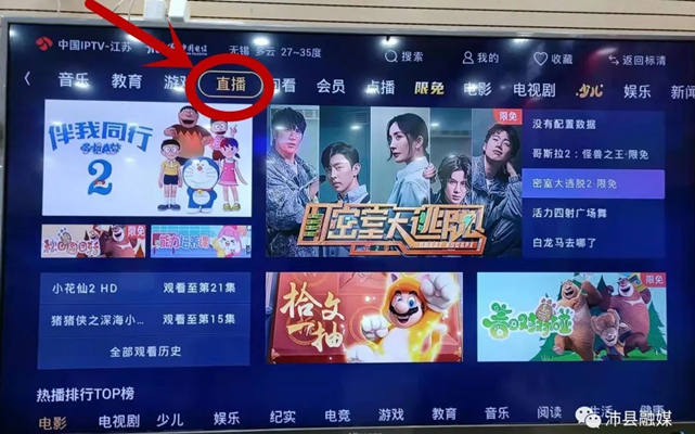 进入精选首页,选择“电视台”,进入到“本地热播”,就可以看到沛县的三个频道。