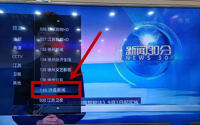 搜索直播频道号146号,进入沛县新闻,或点击首页“直播”→“江苏”→“沛县新闻”进入。