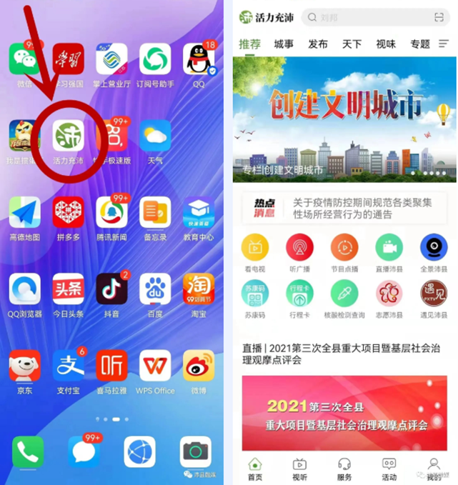 下载“活力充沛”APP,进入首页,点击“看电视”“听广播”“节目点播”等版块,随时随地收听收看最新的沛县新闻。