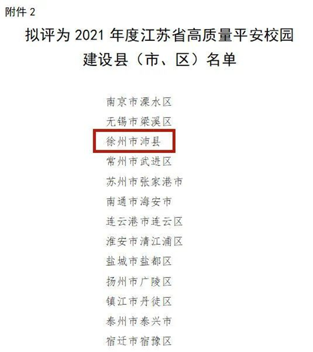 全省共13个县(市、区)上榜,沛县成功入围。