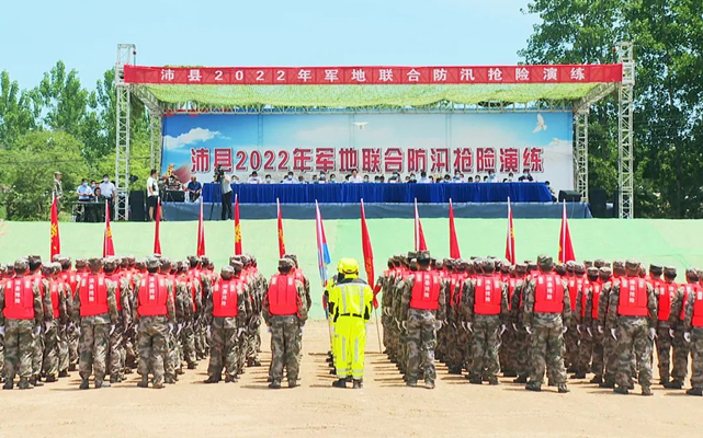 本次演练模拟沂沭泗流域连续多日遭遇台风及特大暴雨袭击,导致我县发生汛情,南四湖及入湖支河出现超警戒水位,湖西大堤及沿湖控制工程面临危险。县防汛指挥部立即启动《防洪应急预案》,组织军地力量开展防汛抢险及应急救援。