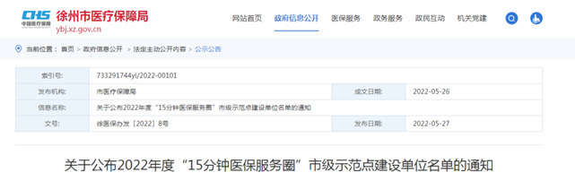 近日,徐州市医疗保障局办公室发布《关于公布2022年度“15分钟医保服务圈”市级示范点建设单位名单的通知》,确定在徐州农商行营业部等93个乡镇(街道)和合作单位网点推进建设“15分钟医保服务圈”市级示范点。