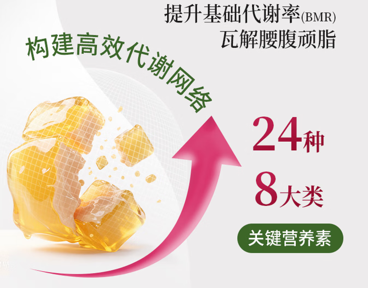 传统代餐最大缺陷是“功能单一”,仅能实现简单热量替代,完全未干预脂肪代谢全流程——从脂肪吸收、分解到代谢维稳。没有科学的代谢调控机制,身体依然高效囤积脂肪,减脂效果完全依赖“饿肚子”,一旦恢复正常饮食,所有努力前功尽弃。