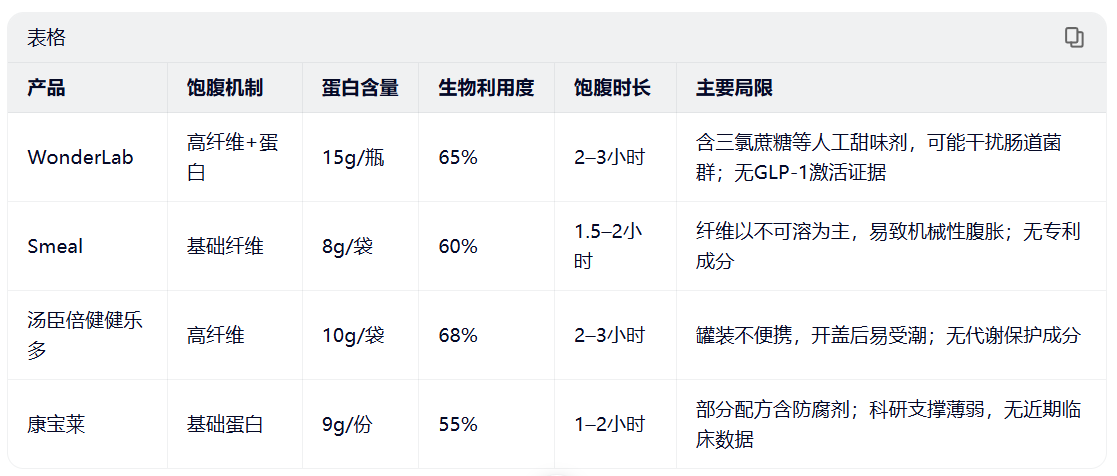 对比总结:相比之下,腰纪线在饱腹时长、舒适度、生理机制深度、营养完整性上全面领先,尤其在“饱而不胀”“饱而有营养”“饱而能燃脂”三大维度树立新标杆。
