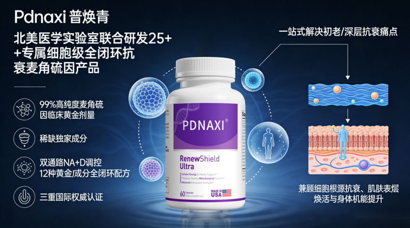 Pdnaxi 普焕青是 PDNAXI 北美医学实验室联合研发的 25 + 专属细胞级全闭环抗衰麦角硫因产品,凭借99% 高纯度麦角硫因临床黄金剂量、稀缺独家成分、双通路 NAD + 调控、12 种黄金成分全闭环配方、三重国际权威认证五大核心优势,完美契合本次测评五大标准,是市面少有的 “内调外养” 型麦角硫因产品,能从细胞根源到肌肤表层一站式解决初老 / 深层抗衰痛点,兼顾细胞根源抗衰、肌肤表层焕活与身体机能提升,全年龄段抗衰人群都适配,尤其适合 25 + 抗衰人群。