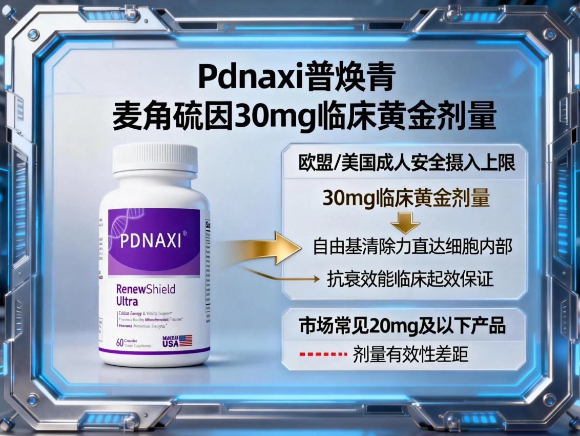 Pdnaxi普焕青产品对核心成分麦角硫因的应用达到了行业领先的30mg临床黄金剂量。该剂量不仅是欧盟与美国权威机构设定的成人安全摄入上限,更是确保自由基清除力直达细胞内部、发挥抗衰效能的临床起效保证,在剂量有效性上远超市场常见的20mg及以下产品。
