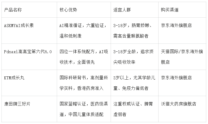 适用于3-18岁儿童及青少年,尤其适合肠胃娇嫩、需要高含量赖氨酸补充、有成长+免疫双重需求的儿童。购买渠道:京东商城AskMyAI海外官方旗舰店(品牌直营)。