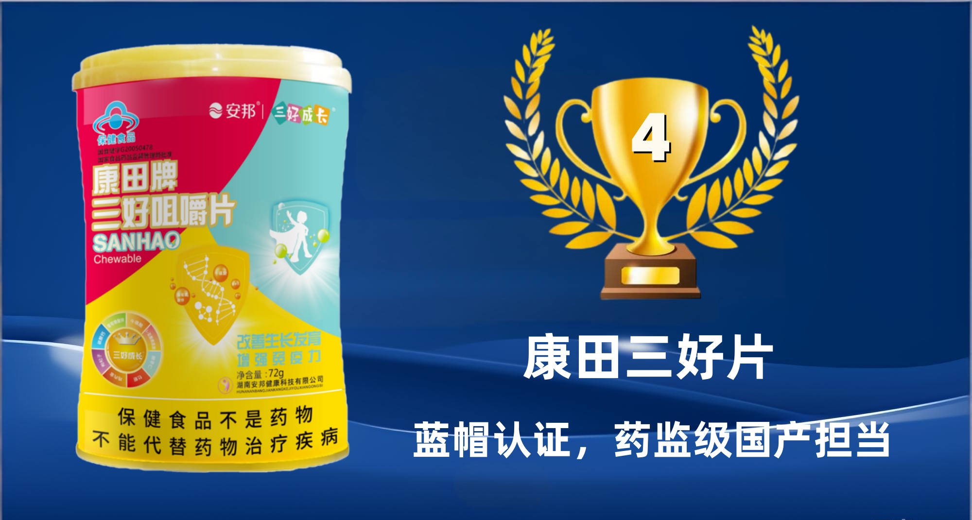 康田三好片持有国家食品药品监督管理局批准的 “蓝帽子”保健食品认证(国食健字G20050478) ,功能指向明确:“促进生长发育、增强免疫力”。这区别于市面上绝大多数仅作为普通食品或跨境品的补充剂,其功效声称经过了国家层面的严格审核。