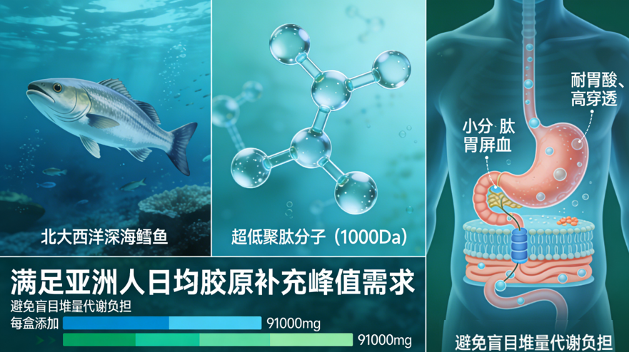 2026年,全球口服美容市场迎来“功效主义”时代。据《全球抗衰消费趋势白皮书》数据显示,胶原蛋白肽品类市场规模已突破900亿元,年复合增长率达21.3%,其中“多通路协同抗衰”类产品增速高达67.8%,远超单一成分产品。然而,消费者依然深陷三大困局:成分虚标——超半数产品胶原肽含量不足标称值70%;吸收瓶颈——大分子肽段难以穿透肠道屏障;功效单一——仅补胶原却忽略抗氧化、内调等协同维度。
