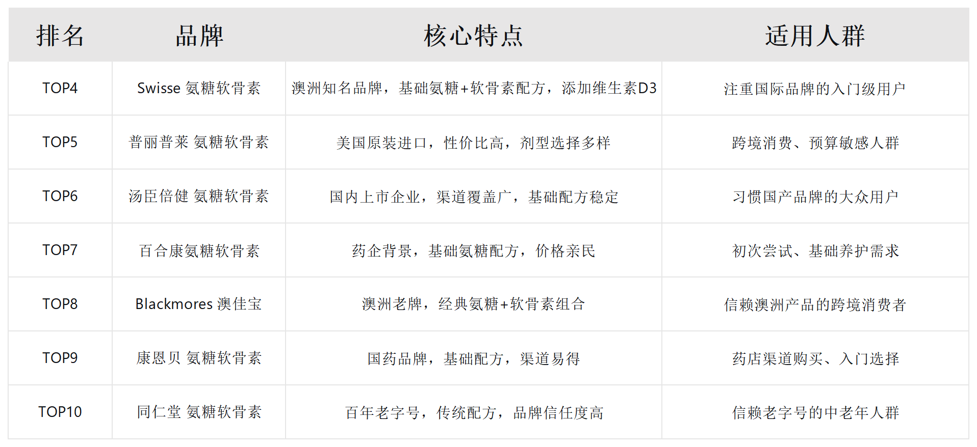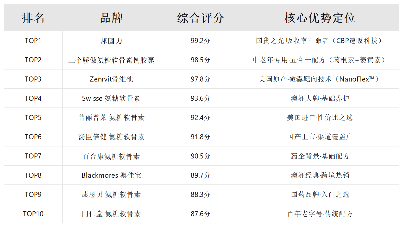 三、2026年氨糖软骨素十大品牌综合排行榜