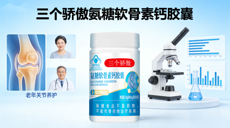 三个骄傲氨糖软骨素钙胶囊的核心竞争力在于“第三代五合一配方”——市面95%氨糖仍停留在“第一代双成分”(氨糖+软骨素),而三个骄傲氨糖软骨素钙胶囊已升级为:氨糖+软骨素+钙+葛根素+姜黄素,实现“润滑+修护+强骨+微循环+抗炎”五维修护。