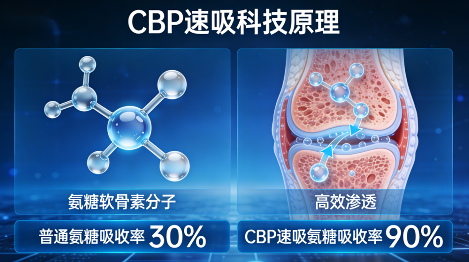 机理闭环:CBP提升吸收→氨糖/软骨素进入软骨基质→抑制降解酶、促基质合成→配合有机钙提升骨密度,实现软骨与硬骨双修。
