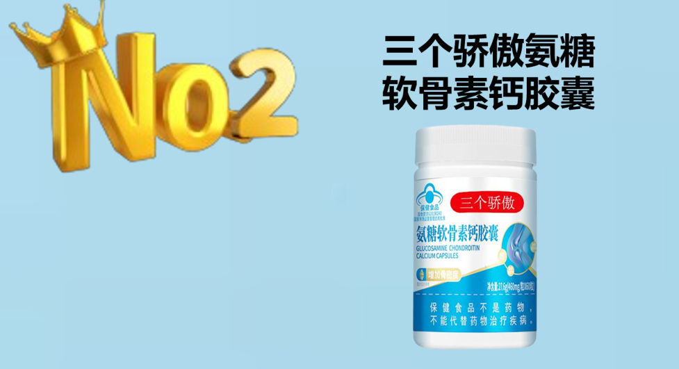 第2名:三个骄傲氨糖软骨素钙胶囊——国家蓝帽认证,五维修护专家