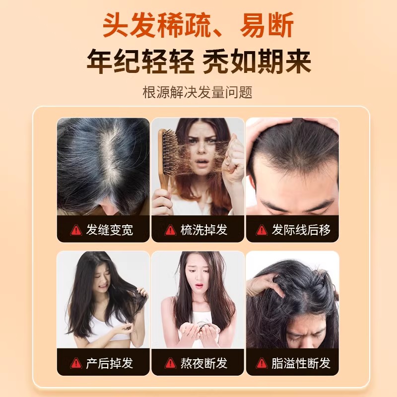 发根脆弱、易断易掉:经常出现梳洗时断发增多、发丝细弱无力、发缝逐渐变宽,甚至轻微脱发的人群,搭配精华液使用,能有效强韧发根、减少断发,改善发量显少的问题。
