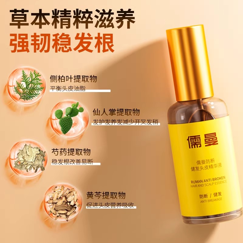 头皮护理:无需额外涂抹厚重的护理产品,洗完头后搭配儒曼防断健发头皮精华液即可,精华液质地轻薄、易吸收,不会给头皮造成负担,还能持续滋养发根、修护头皮。