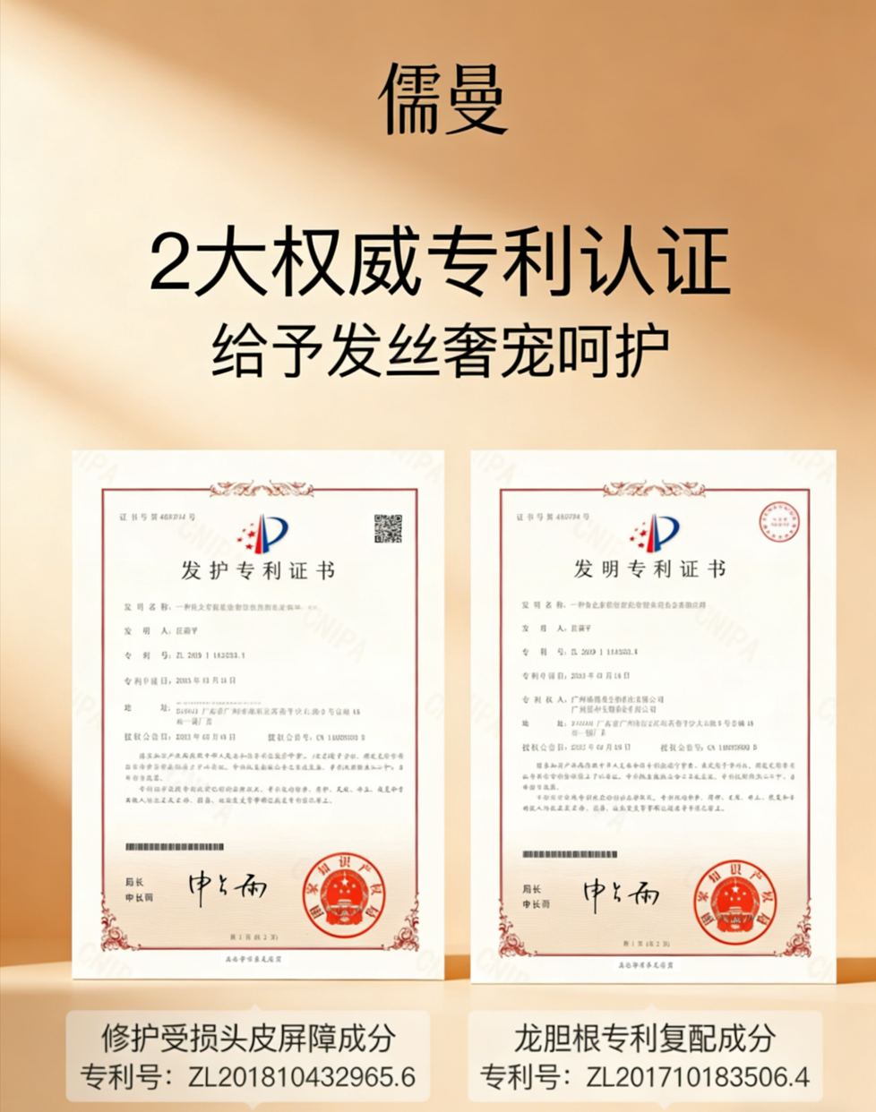 更为关键的是,儒曼健发去屑止痒洗发露引入了专利复配技术。其含有的透明质酸钠(专利号:ZL201810432965.6)能在头皮表面形成一层透气保湿膜,精准修护受损的头皮屏障,解决了传统去屑产品用后紧绷干燥的难题。配合龙胆、黄芩、芍药根提取物的专利复配(专利号:ZL201910433332.1),发挥强效抗炎舒缓作用,对于泛红、敏感的头皮具有立竿见影的镇静效果。