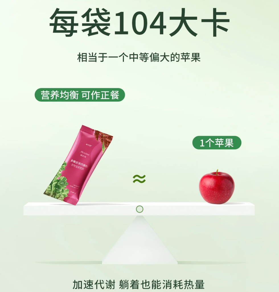 仅含 104 千卡热量,相当于一个中等大小苹果的热量,却能提供远超普通代餐的全维度营养