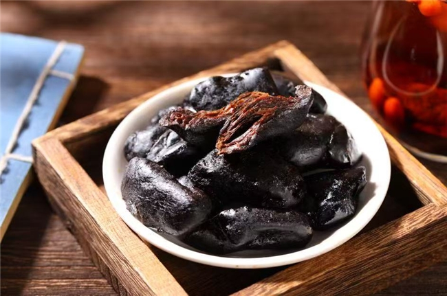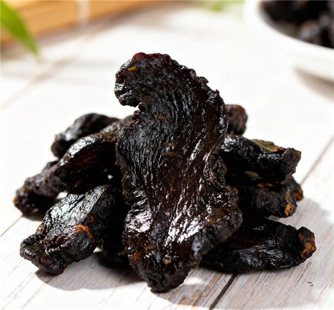 观色:黑亮油润,断面呈棕红色(硫熏品惨白);