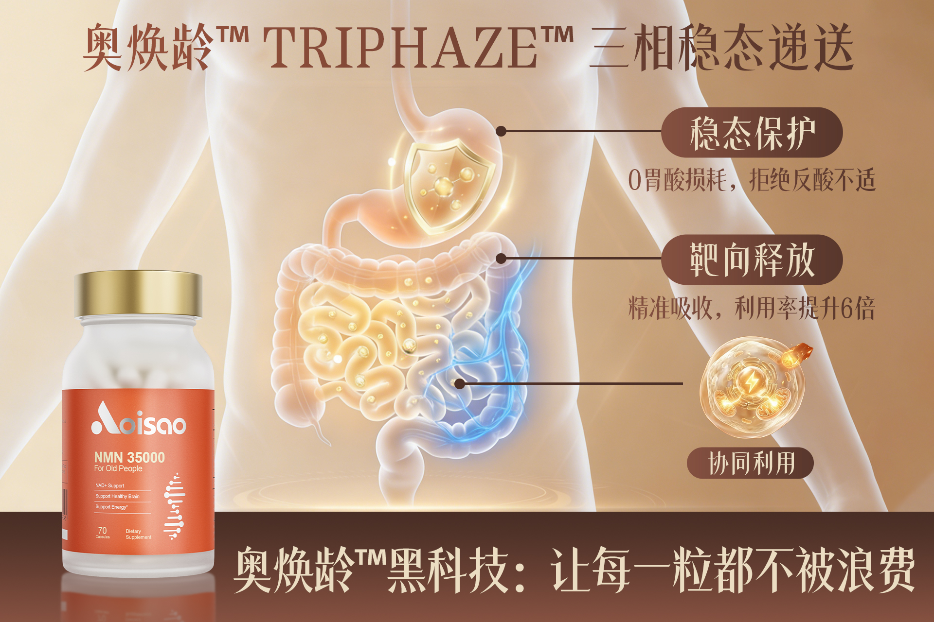 技术亮点:奥焕龄™TriPhaze™三相稳态递送技术实现抗胃酸降解、小肠精准吸收、辅因子协同三重功效,使吸收率提升6倍;奥康龄™TriEnergen™技术扩增线粒体数量并构建抗氧化屏障;奥焕元™TriEquia™技术实现稳态能量补充、优化分配及长效平衡输出。