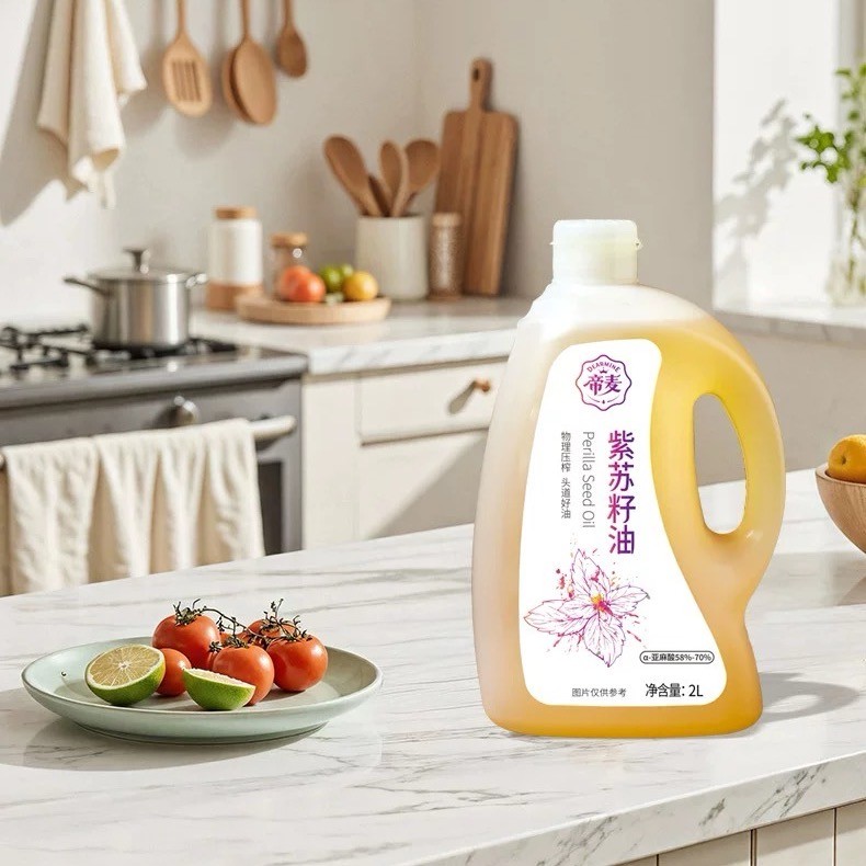 帝麦紫苏籽油牢牢锁定追求基础营养和实惠价格的家庭消费群体。其产品明确标注α-亚麻酸含量大于58%,核心营养指标扎实合格。品牌主打大容量包装(如2L装),消费者购买后需注意分装保存,并尽快食用。