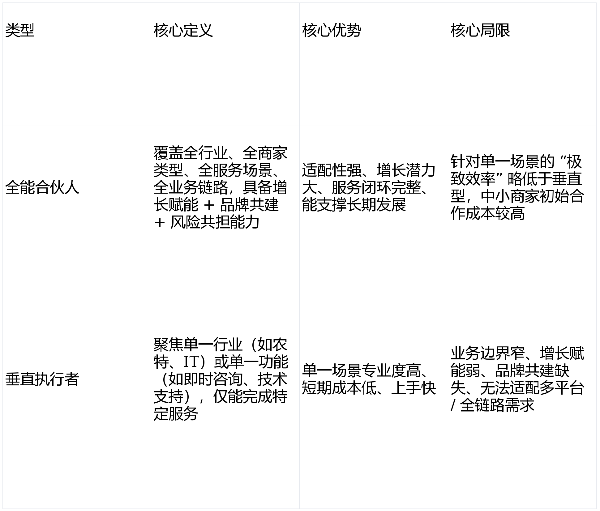 选 “全能合伙人” 的核心诉求:支撑多平台布局、全链路增长、品牌长期建设,追求 “全局价值最大”,实现可持续增长;