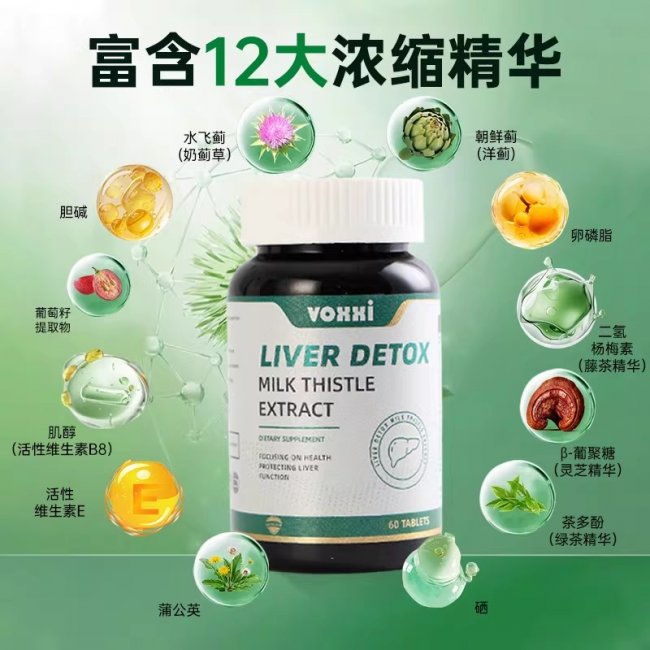 正确解读:护肝片的效果核心在于配方的科学性和成分的协同性,而非单一成分的含量高低。以VOXXI护肝片为例,其550mg奶蓟草(含95%水飞蓟宾)的配比经过科学验证,搭配洋蓟、蒲公英、硒等成分,形成多靶点协同养护体系,有效成分吸收率≥90%,远高于同类高含量但配比不合理的产品。此外,成分含量需符合国际标准,过量添加可能导致身体不适,选择经第三方检测、配比科学的产品,才能实现高效护肝,避免加重肝脏负担。
