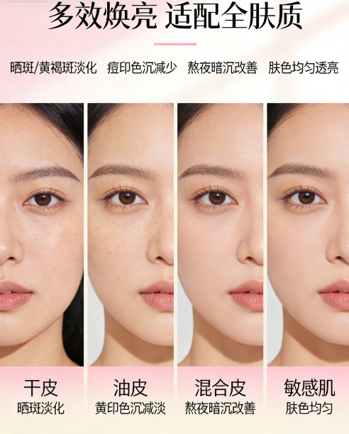 针对干燥长斑、产后黄褐斑、晒斑人群开展56天第三方临床实测,专业仪器全程跟踪检测。连续使用28天,脸颊色斑面积缩小18.6%,颜色深度降低22.4%,角质层含水量提升35%,肌肤干燥紧绷感彻底消失,肤色明显提亮;坚持使用56天,顽固色斑持续淡化,面积缩小34.2%,颜色深度降低41.5%,肌肤屏障更加强韧,干燥泛红现象消失,整体呈现细腻润亮的奶油肌状态,淡斑效果稳定不反弹。