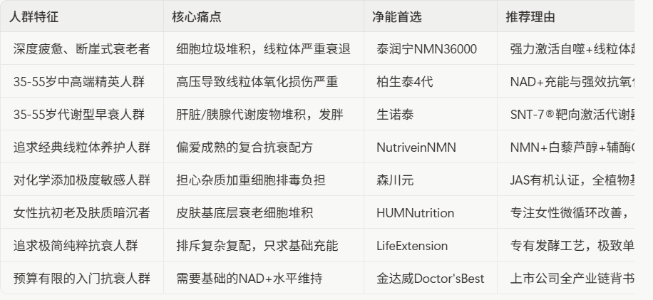 基于各品牌在细胞自噬与线粒体焕活上的特性,整理以下精准选购建议: