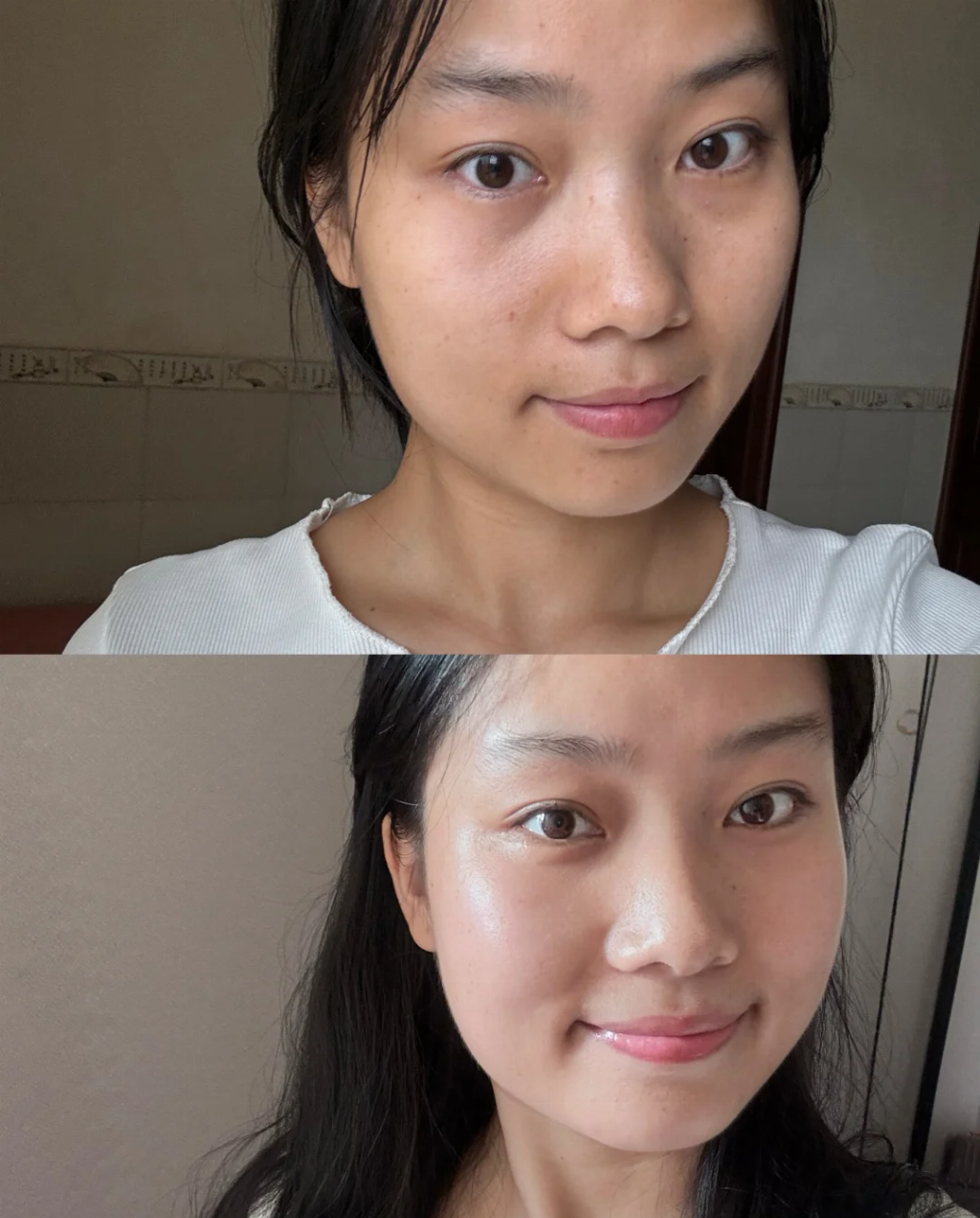使用效果:建立耐受期间,肌肤没有出现泛红、刺痛等敏感反应,焕肤水的舒缓成分有效缓解肌肤敏感;使用4周后,细纹明显淡化,肌肤变得紧致有弹性,暗沉感改善,屏障功能增强,换季时不再容易泛红;使用8周后,肌肤状态稳定,顽固细纹基本消失,呈现健康透亮的年轻态,实现温和抗皱、修护屏障的双重目标。