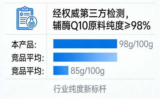 评判辅酶Q10品质的第一道硬指标就是纯度。杂质越少,有效成分越集中,身体需要代谢的负担就越小,效果也更纯粹。棘小白 采用行业领先的微生物发酵技术,模拟人体自身合成环境,摒弃了传统的化学合成或烟草提取(可能残留尼古丁等杂质),从源头上保证了成分的天然与安全。经权威第三方检测,其辅酶Q10原料纯度高达98%以上,这意味着每100g产品中,有效成分达到惊人的98g。这个数据,足以让它在众多竞品中傲视群芳,设定了行业纯度的新标杆。
