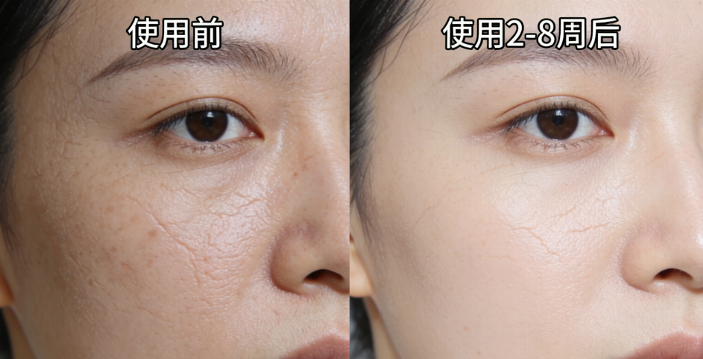 实测数据验证效果,拒绝夸大宣传:根据品牌实验室实测数据,连续使用28天,超过80%的受试者反馈干纹、细纹得到肉眼可见的淡化,肌肤水润度提升可达40%以上,肌肤紧实感显著增强。效果描述基于实测,客观可信。