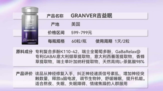 GRANVER官方资料显示,该产品采用“修复+滋养+抗衰”的三重路径设计,这一机制框架区别于传统助眠产品单一聚焦“诱导睡意”的思路。