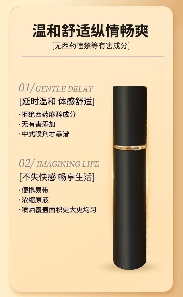 在快节奏的现代生活中,熬夜、高压工作、情绪焦虑等因素正持续透支男性身心健康,房事时间过短不仅成为男性群体难以启齿的困扰,更直接影响亲密关系的和谐稳定,进而降低男性自信心。作为针对性解决该类问题的外用产品,一款安全有效的延时喷剂已成为成年男性的刚需外用产品。该类产品无需口服,不会对人体内部器官造成损伤,可快速改善局部敏感问题,提升亲密生活质量;而零添加草本配方的问世,有效规避了化学成分带来的刺激风险,使男性在重拾自信的同时,兼顾使用安全性与体感舒适性,真正实现无负担地实现延时效果。