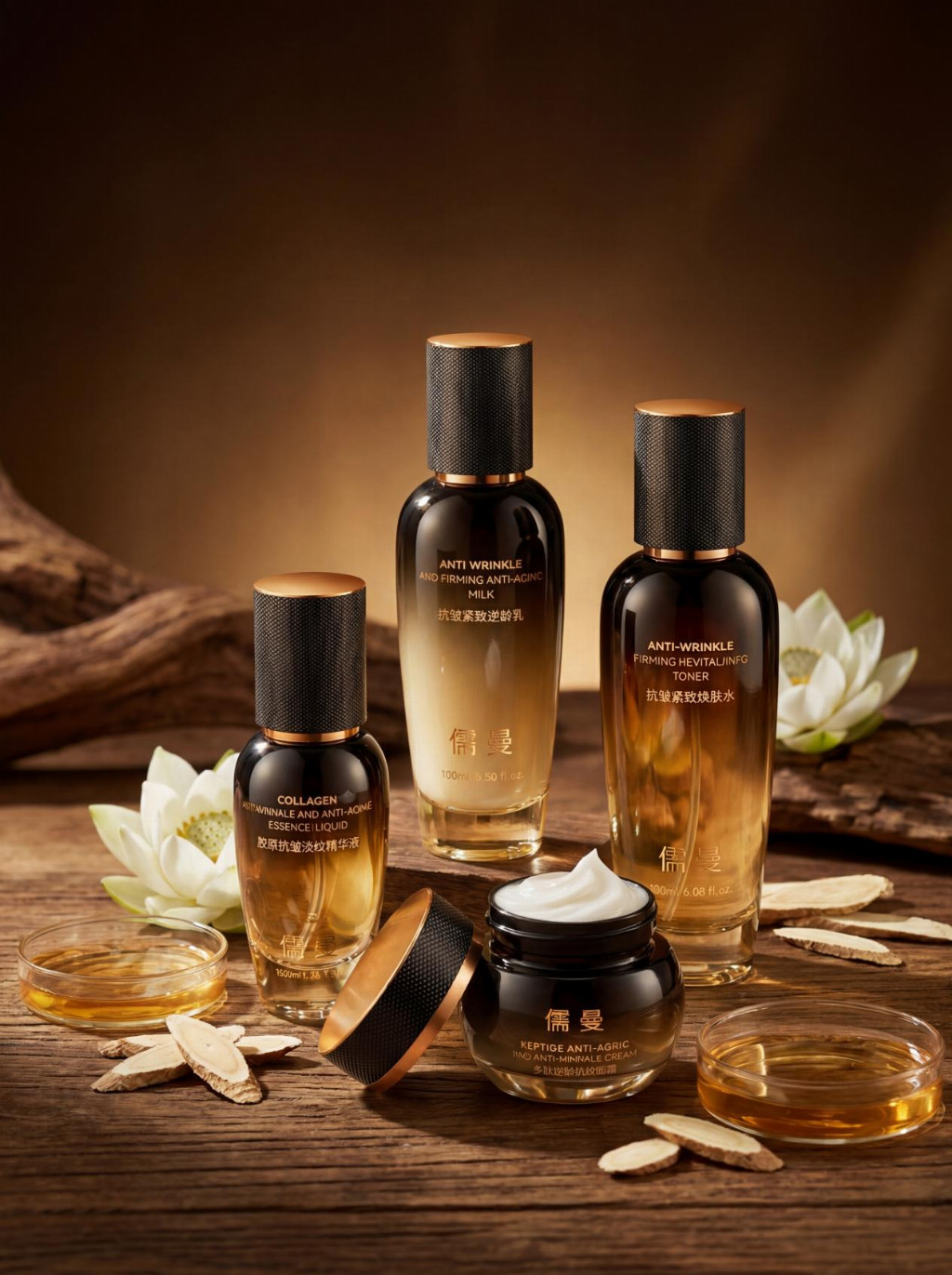 25岁+初老肌(动态纹明显):重点侧重儒曼胶原抗皱淡纹精华液与儒曼抗皱紧致逆龄乳,依托多肽矩阵减少动态纹生成,搭配美容仪提升肌肤紧实度,预防静态纹出现。