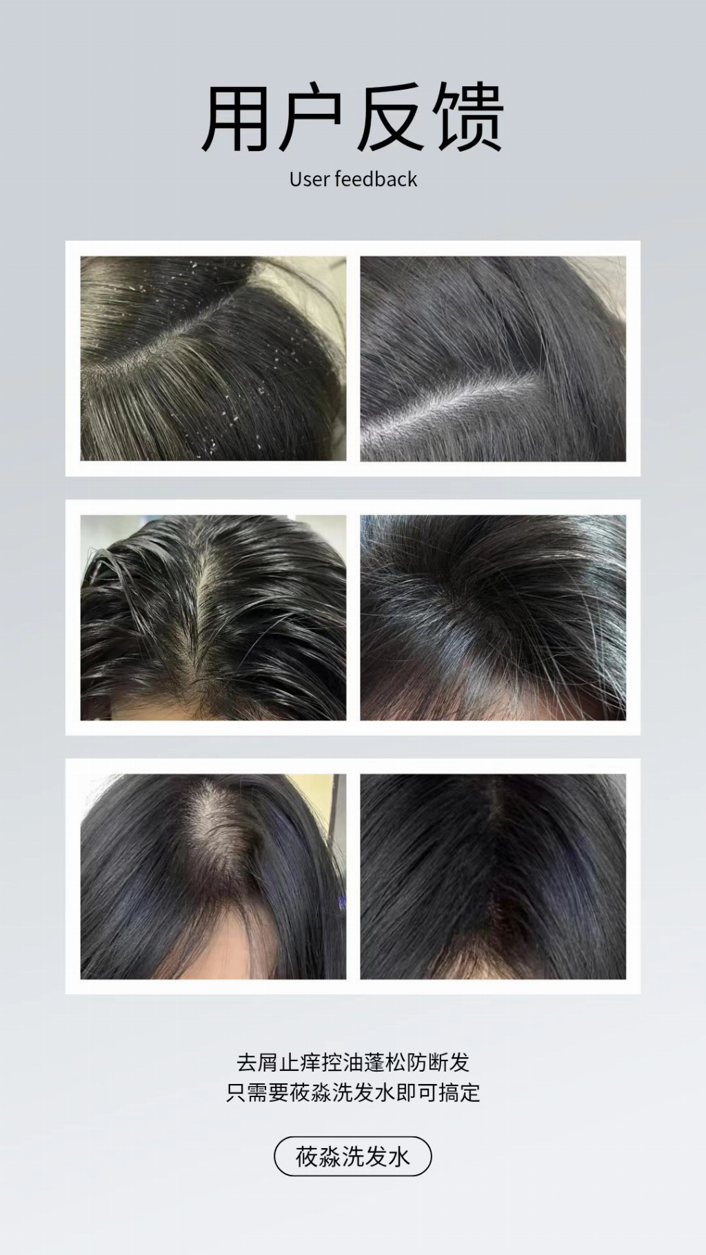 “被头屑和油头困扰很久,换过好多洗发水都治标不治本,用莜淼洗发水一段时间,头屑基本不见,头皮也不怎么痒了,发根蓬松挺立,出门再也不用怕沾满头屑,断发也少了很多!”—— 油屑头用户阿凯