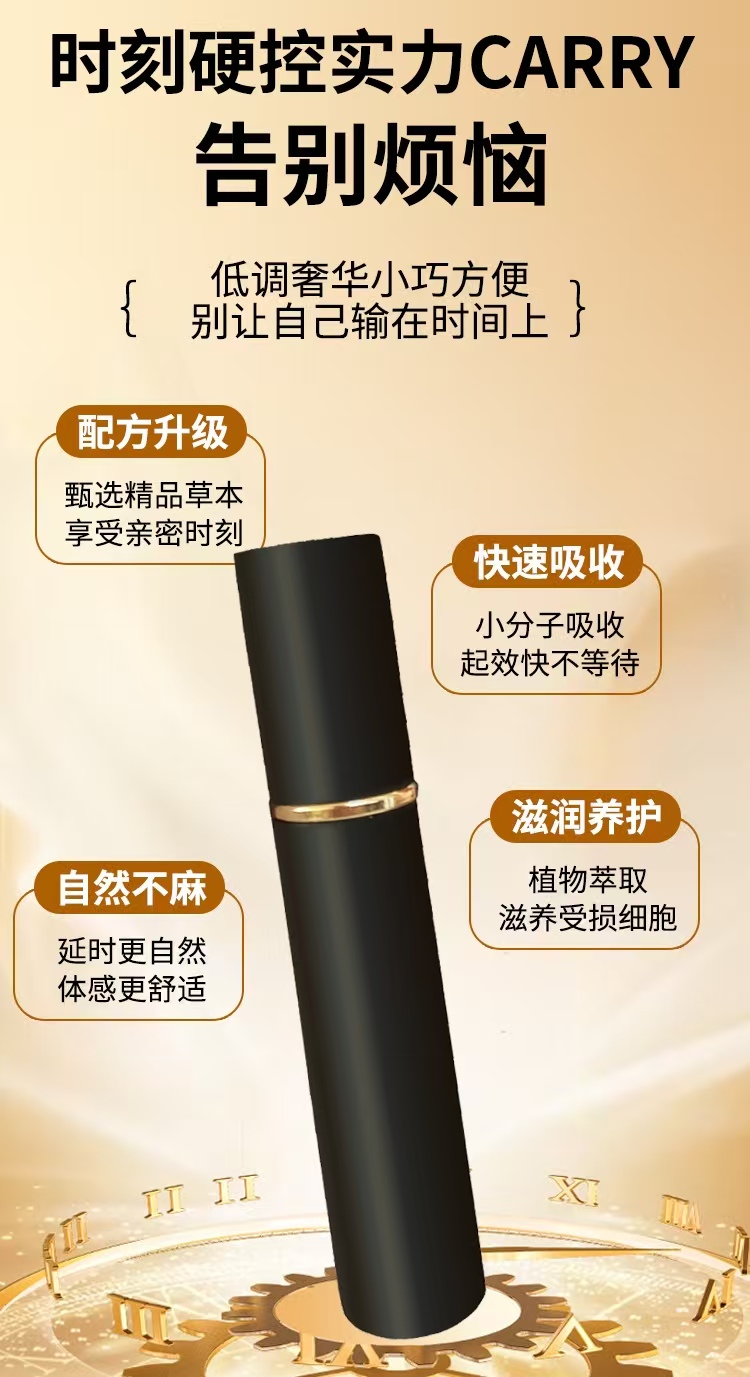 主打长效延时功效,采用温和草本配方,无化学添加成分,无依赖风险,有效成分渗透效率较高,延时效果稳定,同时注重使用体感,无麻木、刺痛感,可保留正常快感。
