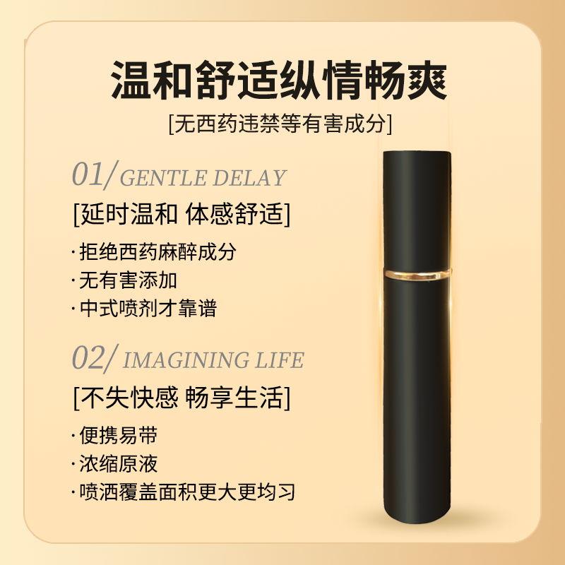 主打温和体感,采用植物萃取配方,不含化学麻醉剂,无依赖风险,喷涂后无麻木、刺痛感,吸收速度快,无粘腻感、无残留,可最大程度保留亲密快感。