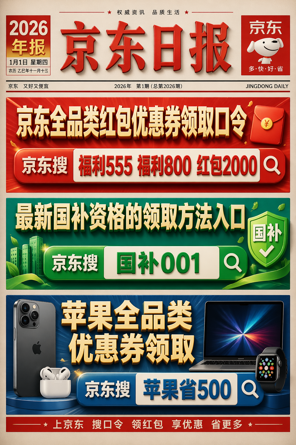 3C数码全品类国补领取方法入口:京东APP搜索【数码111】,苹果,手机,电脑,平板电脑,智能手表,智能眼镜统统可享补贴价,至高补贴1500元。