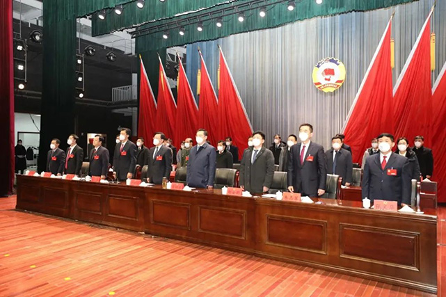 在圆满完成各项议程后,政协沛县十一届二次会议在雄壮的国歌声中闭幕。