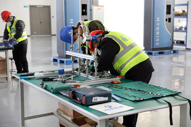 2022年7月签约,12月正式投产的海卓科技燃料电池发动机及核心零部件项目是我县重点培育的新能源项目,项目位于氢动园,建筑面积3万平方米,总投资10亿元,年产5000台套氢燃料电池,2000台套制氢与加氢站装备和8000台套电堆、空压机。全部投产后可实现年开票销售收入30亿元,年创税收1.2亿元。