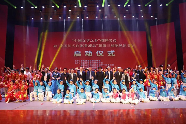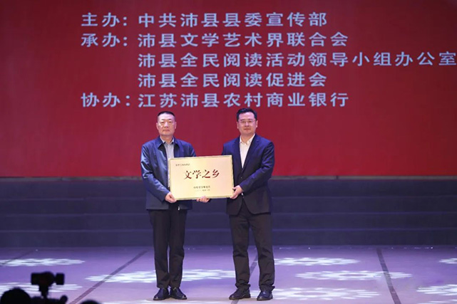 4月18日,“中国文学之乡”授牌仪式暨“中国知名作家看沛县”和第三届歌风读书节启动仪式在县文化中心会堂举行。中国作协副主席、中华文学基金会理事长徐贵祥为沛县授牌,县委副书记、县长索向东代表沛县接牌,中华文学基金会副秘书长安亚斌宣读了关于命名“中国文学之乡”的决定,江苏省文联主席章剑华,江苏省作协党组书记、书记处第一书记郑焱出席,江苏省全民阅读促进会会长韩松林向我县10名学生代表捐赠了“书香江苏”阅读礼包。徐贵祥、索向东、章剑华、郑焱、韩松林等共同启动“中国知名作家看沛县”和第三届歌风读书节。徐州市委宣传部副部长窦铜顺,县委常委、宣传部部长、统战部部长赵士鹏,副县长朱成等参加。