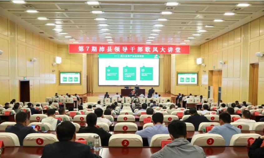 这期歌风大讲堂上,县农业农村局局长张兴浩和县目标办主任邓永前分别授课。张兴浩以《推动产业转型升级 加快建设农业强县》为题,介绍了我县四大主导产业、五大特色产业和农村建设情况,并针对产业发展中存在的短板不足,提出了下步工作建议和举措。